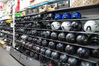 Helme, Rückenprotektoren, Stöcke, Ski-/Schuh- und Snowboardtaschen